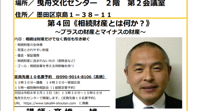 第111回 相続寺子屋東京主催「寺子屋区民講座」のお知らせ